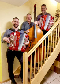 Mit Beat Stöckli und Wendelin Hodel an der Handorgel wird die lüpfige Musik im Innerschwyzerstil von Osi Zurfluh am Kontrabass begleitend unterstützt.